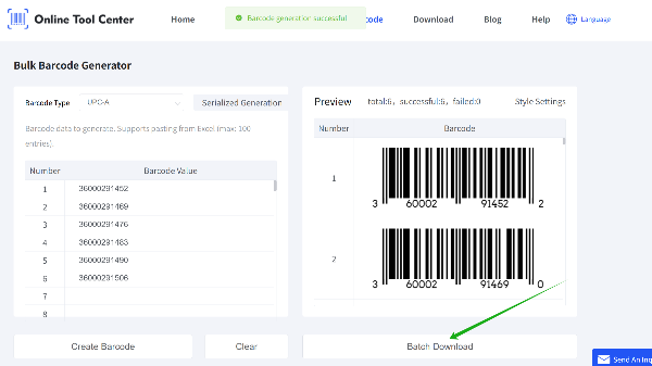 توليد ما يصل إلى 100 باركود EAN-13 أو UPC-A مجانا. نسخ البيانات من Excel، واختر تنسيقك، وتنزيل الباركود جاهزة للطابعة في بريد بريد واحد.